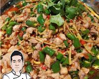 四川当地人都爱吃兔子,用鲜嫩的仔姜烹饪它,形成一种独有的麻辣、清香、嫩滑的味道 兔肉含有高蛋白质低脂肪,这款菜肴非常适合喜欢吃辣的"上帝"食用 特点:色泽红亮,闻到一股仔姜及青尖椒扑面而来的清香,麻辣味浓郁..